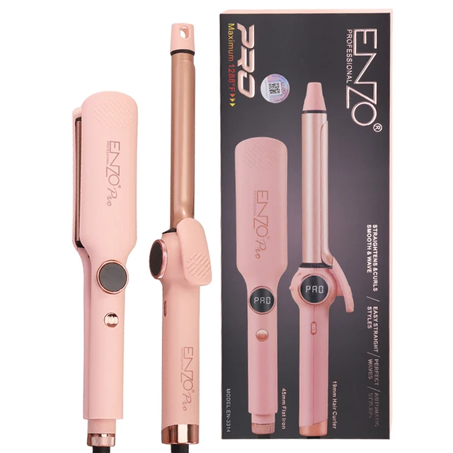ENZO Salon Barber Custom logo Plancha De Cabello Negative Ion Electric Pink 2 in 1 Hair Straightener and Curling Iron Set