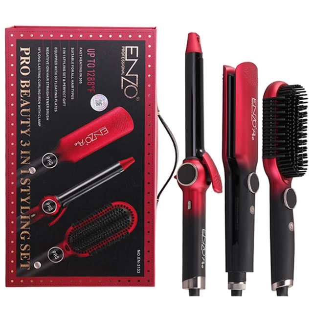 ENZO Women Custom Hair Styling Tools Multi Professional Hot Comb Hair Straightener Brush Curling Iron Waver Wand Tong Set