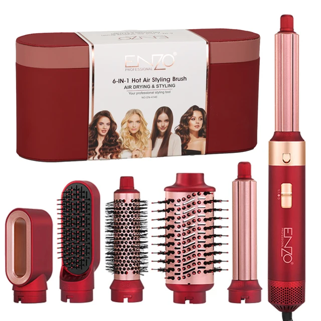 ENZO EN-4140 Red 6 in 1 Professional Multi Styler Hair Blow Dryer Brush Hot Air Comb Curling Irons Curler With Leather Case